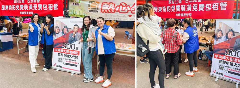現場除了歡樂的親子活動,也設有包租代管推廣攤位,由廖副理事長與謝理事親自分享政府政策,讓更多家庭了解如何透過這項制度,獲得更安心、穩定的居住環境。透過闖關遊戲,我們也一起響應低碳生活,用最自然的方式把「永續」、「好居」的理念傳遞出去。