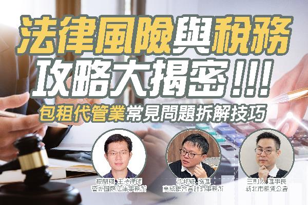 教你如何降低法務風險、合法節稅,並建立完善的租賃管理機制,避免因合約漏洞或稅務錯誤導致的財務損失。