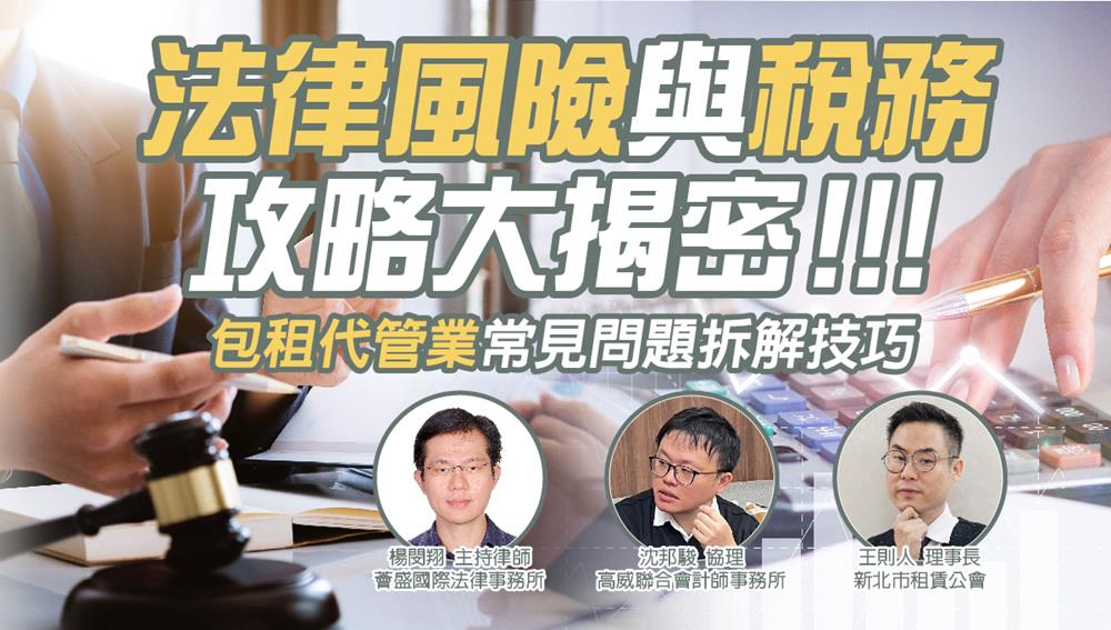 房東及租服業最想了解的主題︰風險控管,包租代管的法律風險與稅務攻略大揭密!