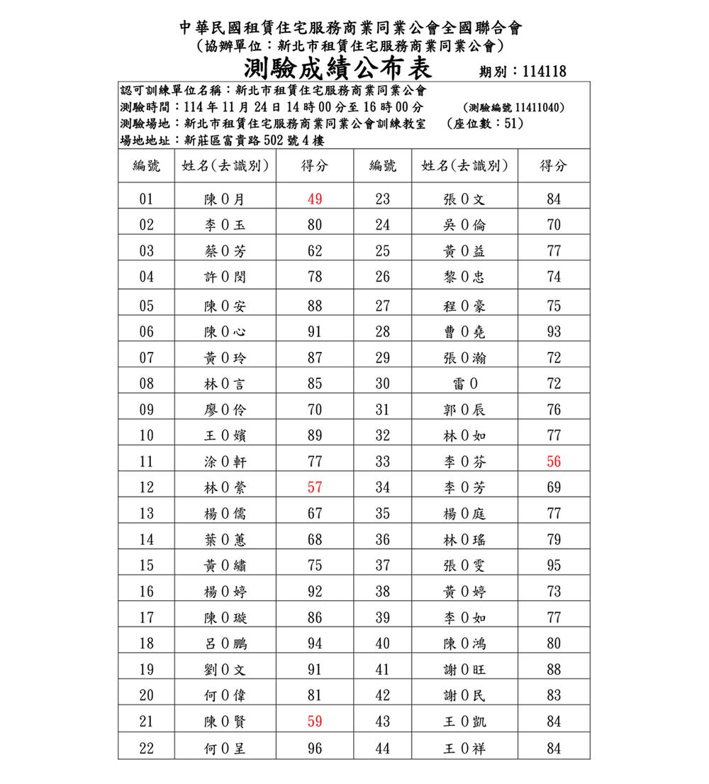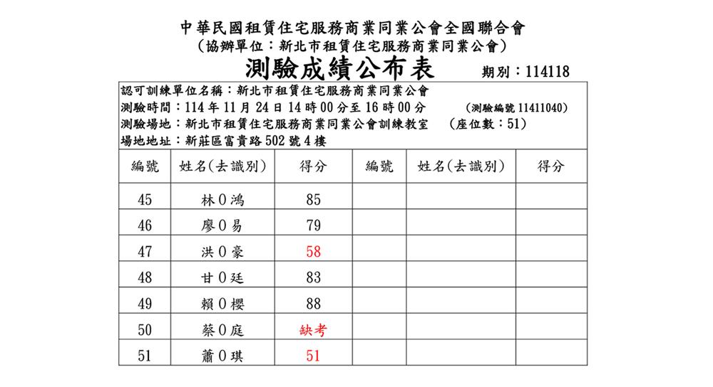 (新訓二班)114年11月份【租賃住宅管理人員專業訓練班】測驗成績單