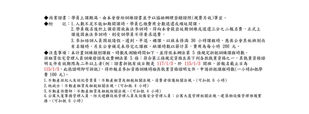 (假日班)115年01月份【租賃住宅管理人員專業訓練班】報名簡章