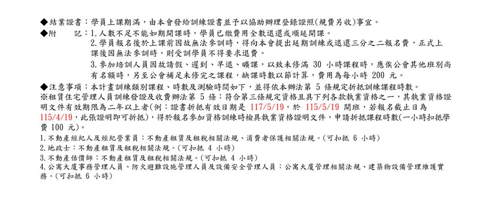 (新訓三班)115年05月份【租賃住宅管理人員專業訓練班】報名簡章