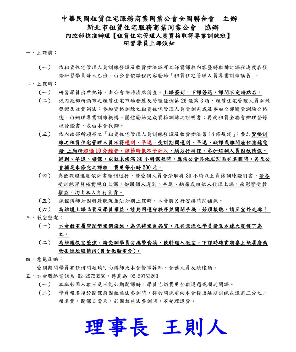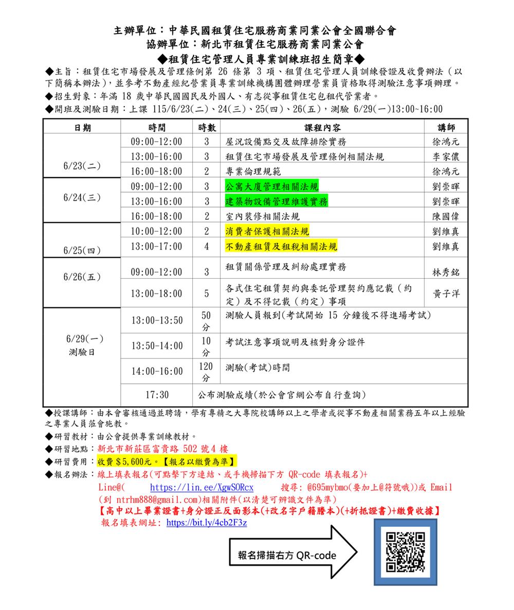 (新訓三班)115年06月份【租賃住宅管理人員專業訓練班】報名簡章