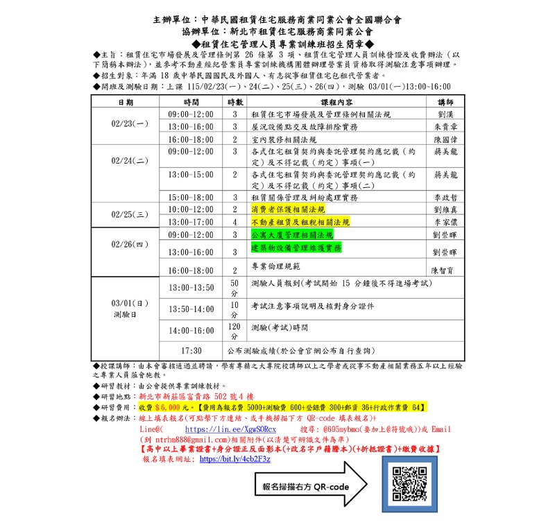 (新訓二班)115年02月份【租賃住宅管理人員專業訓練班】報名簡章