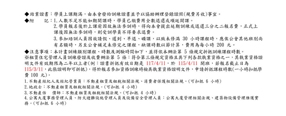(假日班)115年04月份【租賃住宅管理人員專業訓練班】報名簡章