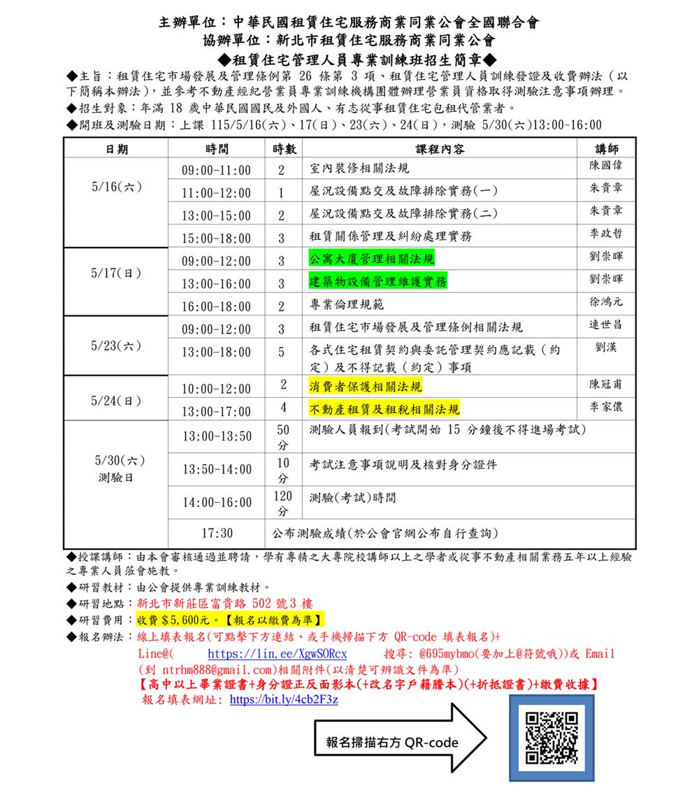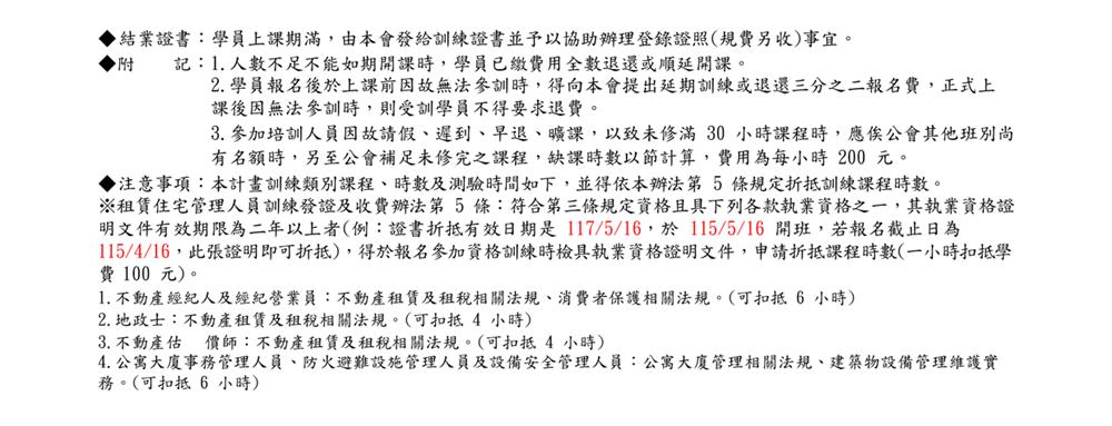 (假日班)115年05月份【租賃住宅管理人員專業訓練班】報名簡章