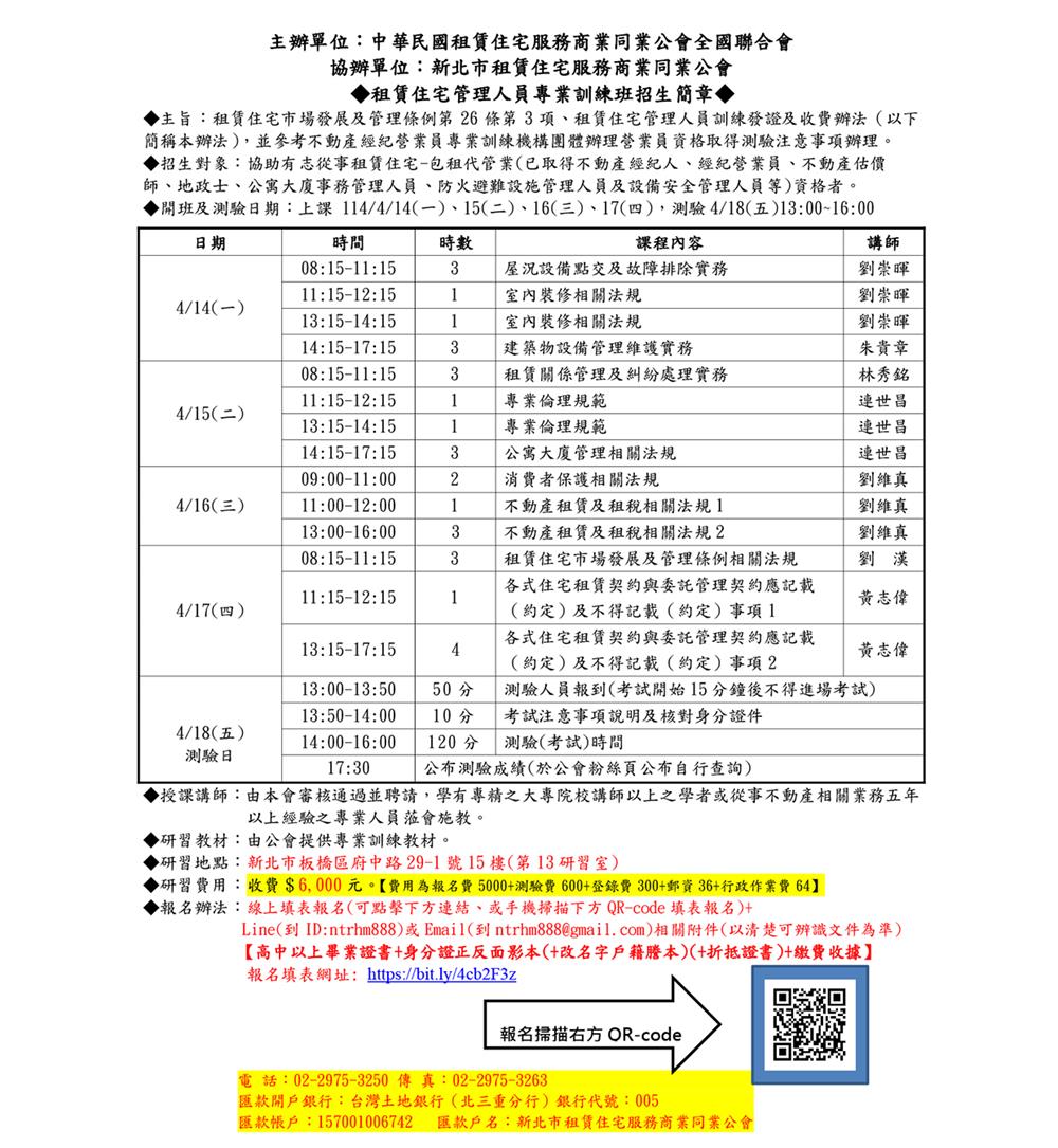 (新訓二班)114年4月份【租賃住宅管理人員專業訓練班】報名簡章
