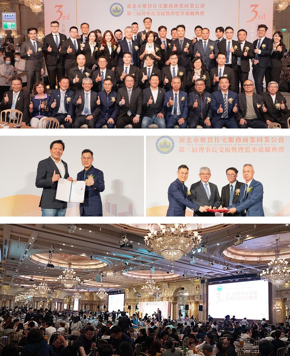 新北市租賃住宅服務商業同業公會第三屆理監事交接暨授證典禮於23日圓滿完成! 現場湧入超過800位貴賓與會員代表,由創會理事長朱大川正式將理事長印信傳承予新任理事長王則人,象徵世代傳承與責任接棒,帶領產業即將邁向共好、創新、永續的新階段。